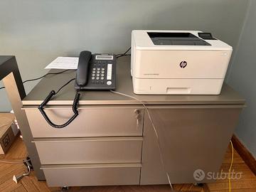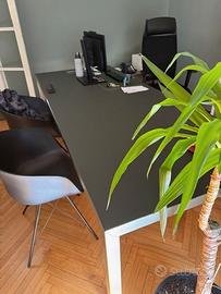 Scrivania da ufficio, dimensioni L.250xP.100xH.73 cm, completa di TOP access, dimensioni L26,5xP12,3 cm, apribile 2 lati, per il passaggio dei cavi e appendice su ruote 1 cassettiera (3 cassetti di cui uno con serratura) + anta DX, dimensioni L.87xP.58xH.60 cm, usati pochissimo, in perfette condizioni.