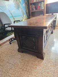 scrivania il legno massiccio anni 70 dotata di cassetti perfetta come scrivania da ufficio(grande)0 studio solidissima capiente e in buone condizioni(ideale per studi notarili,avvocati,commerc.)dimensioni lungh.191 larghezza.86 altezza 80 solo ritiro a mano n.b.consiglio di venire a vederla è veramente imponente)