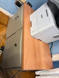 Scrivania da ufficio in legno. Misura: 2 mt x 90 cm + mobiletto in legno con n. 6 cassetti. Misura: 97cm x 58 cm.