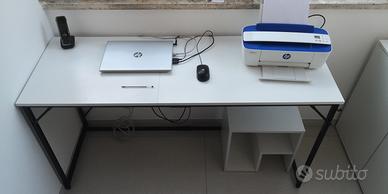 Scrivania da ufficio nuovissima appena acquistata misure 140x50 Piano in compensato bianco struttura metallica nera. Già montata. Ritiro a domicilio Roma zona Cassia