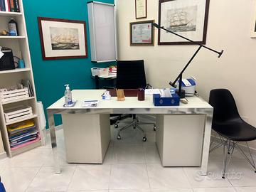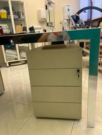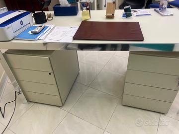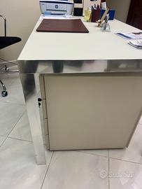 Scrivania in vetro satinato e alluminio in buono stato molto robusta ed elegante completa di cassettiera