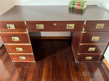 Bellissima scrivania della marina militare. Legno magano classico 9 cassetti un cassetto centrale con la chiave.