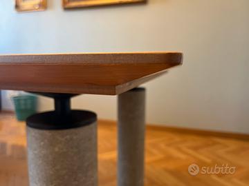 Professionista vende elegante scrivania di design in legno con piedini a tubolare color cemento.