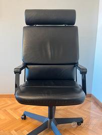 Completa la scrivania l’elegante poltrona direzionale in pelle dotata di pistoni che permettono di alzarla e inclinarla.
