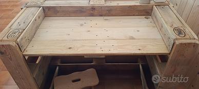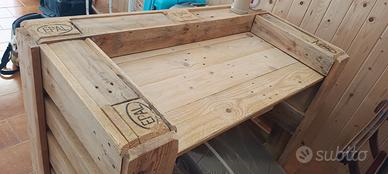 Vendo scrivania costruita artigianalmente con bancali in Epal. Nessun problema ed usato pochissimo Non spedisco e non tratto sul prezzo Ritiro carico acquirente Misure lung 125 largh 62 altezza 80 cm