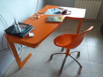 Scrivania di legno verniciato in buone condizioni con sedia. La scrivania è lunga 2 metri.