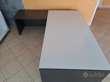 Scrivania usata direzionale in vetro satinato bianco per ambienti di prestigio 200x100 cm comprensiva di: