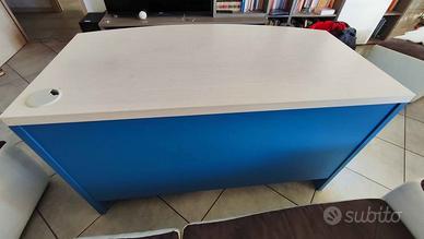Causa cambio arredi, vendo scrivania come da foto. Robusta e pesante. Dimensioni: 130*70*75 cm profondità con seconda scrivania: 117cm spessore piano lavoro e penisola: 35mm profondità penisola 58 * 65cm altezza Spessore fianchi 28mm Scrivania già smontata Ritiro presso mia abitazione a 2km dal Casello A4-Rovato (BS)