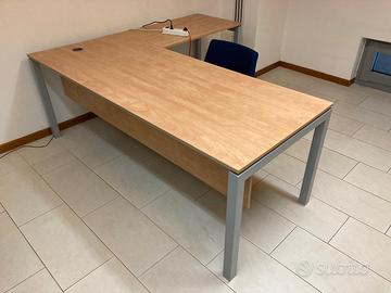 N.1 Scrivania ad angolo in legno chiaro , struttura in acciaio misura: 200×80 + 100×60 cm