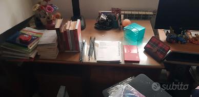Scrivania 72 x 135 cm, base 390 x 57 cm alt. 1 mt, armadietto 135 x 33 cm alt. 150. Smontaggio e trasporto a carico dell'acquirente. Mobili in condizioni nuove. 60 euro insieme o 25 euro a pezzo