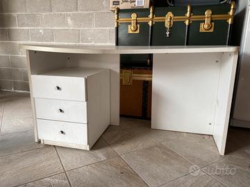 Scrivania e cassettiera colore bianco. Buono stato. Vendo per sgombero locale.