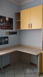 Ampia scrivania in legno (NON truciolato) con libreria e pensili, in ottime condizioni e ottima fattura. PREZZO SU RICHIESTA e trattabile via chat!