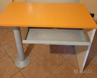 Moderna scrivania color bianco /giallo melone, tenuta bene, si presta per cameretta ragazzi. La scrivania presenta, una base scorrevole per riporre oggetti e/o tastiera per pc...).
