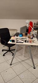 Scrivania in legno IKEA, dimensioni 160 largh, 80 profondità e 79 altezza. Fori passacavi e griglia portacavi e alimentatori parte posteriore. Condizioni pari al nuovo, costo del nuovo 190 euro. Schermo lcd hp, vendita in blocco a 100 euro