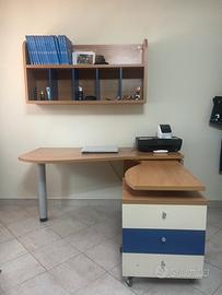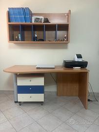 Scrivania in buono stato… ampio piano di lavoro e anche estensibile con tre cassetti… il pensile con tutti i divisori e’ molto robusto e versatile adatto x varie esigenze