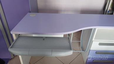 scrivania con porta tastiera PC. Cassettiera con 3 cassetti .larghezza 60 cm . h 72cm .profondità 60cm sedia con rotelle