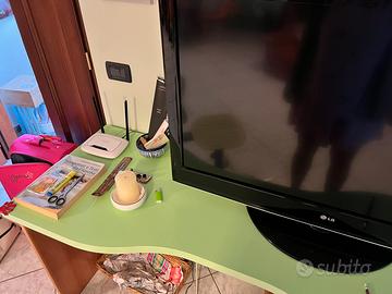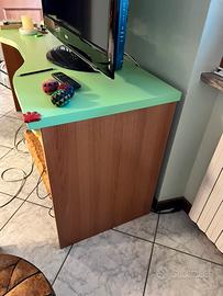 Scrivania e sedia girevole color legno e verde