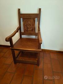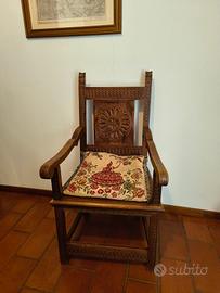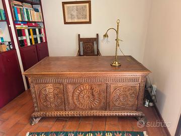 Scrivania e sedia in legno lavorato