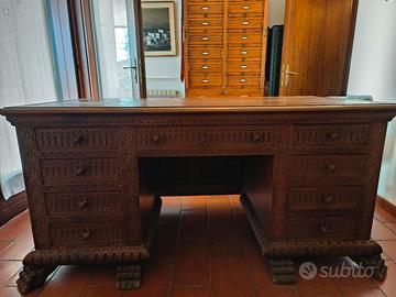 Scrivania e sedia in legno lavorato Dimensioni: lunghezza 85cm larghezza 164cm altezza 80cm