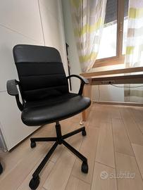 Vendo grande scrivania e sedia ufficio IKEA. Alcuni difetti da usura come in foto. Vendibili anche separatamente.
