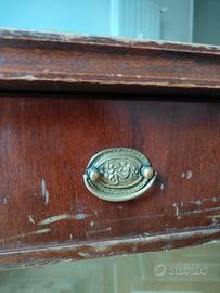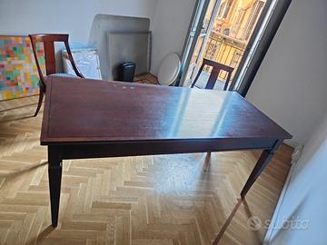 si tratta di una scrivania con cassetto (180x80x78) e di due sedie rivestite in tessuto blu con motivo a rombo, la scrivania presenta l'usura del tempo come visibile in foto (se interessati manderò altre foto in chat), le sedie sono in ottimo stato. si trovano a Torino in zona Metro Vinzaglio. il prezzo è trattabile se veramente interessati.