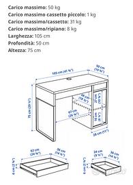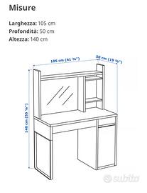 Scrivania bianca compresa di elemento supplementare alto modello MICKE di IKEA.
