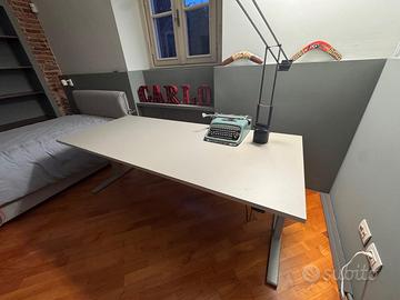 Dimensioni 200x86, alzabile e abbassabile elettronicamente tramite un tasto sotto la scrivania