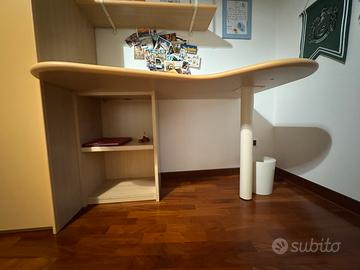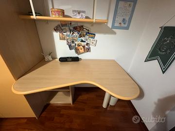 Scrivania sagomata, linee morbide e sinuose. Garantisce ampio e funzionale spazio di lavoro. Presenta due grandi ripiani sotto la superficie di appoggio. Dimensioni L: 128cm P: 80 cm Max 60 cm Min
