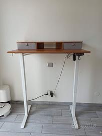 Scrivania regolabile in altezza con 2 cassetti in tessuto, 100 x 60 cm, elettrica ergonomica.
