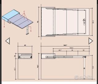Perfetto per creare una zona studio nella camera da letto ma anche per camerette: vendo nuovissimo scrittoio MODERNO sospeso ed estraibile Marca Colombini Casa, modello “Click”, acquistato nel 2022, laccato opaco colore grigio titanio con frontale apribile a pressione, piano estraibile color canapa. Il sostegno richiudibile è in metallo ed il piano tavolo estraibile è spesso 1,8 cm. La cassa componibile che contiene lo scrittoio ha uno spessore di 1,8 cm Misure quando è chiuso: lunghezza 90 cm, profondità 45 cm, altezza 16 cm – può essere usato come scrittoio anche da chiuso o, ad esempio, vi si può collocare sopra un televisore. Misure quando è aperto: lunghezza 90 cm, profondità 148,7 cm, altezza 78,7 cm (ci lavorano comodamente due persone adulte contemporaneamente, una di fronte all’altra). Vendo perché ho cambiato casa e purtroppo non ho spazio per collocarlo nella nuova. Pagato euro 555. La sedia nella foto non è inclusa. Non necessita di montaggio ma solo di fissaggio al muro. Solo ritiro a mano, zona Monza. Prezzo trattabile.