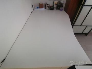 Spaziosa scrivania laccata bianca misure: larghezza 180cm,profondità lato dx 100 cm, lato sx 80 cm,altezza 72 cm, già smontata e pronta x ritiro a Firenze periferia