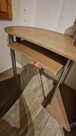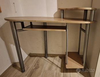 Scrivania dal design moderno e funzionale, con pratico rialzo per il monitor del pc, porta tastiera estraibile e mensola inferiore. La forma tondeggiante è molto pratica e gli da un'estetica particolare. La scrivania è usata ma in buone condizioni, completa di tutti i pezzi. Al momento la sto tenendo montata perché date le dimensioni (110cm in lunghezza, 78cm in altezza e 50 cm in profondità) potrebbe essere trasportata anche senza bisogno di smontarla, ma ove fosse necessario posso prepararla smontata per il trasporto. SOLO RITIRO IN LOCO, no spedizioni (Firenze, zona Coverciano) Prezzo trattabile.