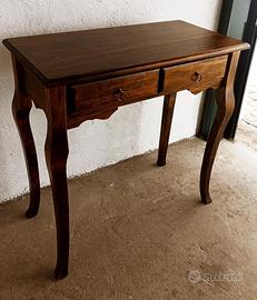 Scrivania francese in noce in stile Luigi XV del XIX secolo, con due cassetti e gambe cabriole.