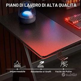 Scrivania Gaming Ergonomica, 140 x 60 cm Tavolo da Computer, Scrivania Gamer con Porta Bicchiere e Gancio per Cuffie, Piano del Tavolo in Fibra di Carbonio Impermeabile, Nero. nuova ancora nella scatola. solo consegna a mano