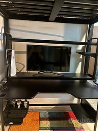 Vendo scrivania gaming IKEA modello FREDDE, colore nero, completa e funzionale. Costo originale 299,00 euro. Utilizzata per circa 3 anni e mezzo, in ottime condizioni. ✔️ Ripiano rialzato per monitor ✔️ Mensole laterali porta giochi/accessori ✔️ Piano ampio e comodo ✔️ Struttura stabile e robusta ✔️ Ideale per gaming, studio. 📏 Dimensioni: Profondità: 74 cm Altezza: 146 cm Larghezza: 140 Perfetta per creare una postazione ordinata e completa. 💰 Prezzo: 150€ trattabili 📍 Ritiro a mano Disponibile da subito.