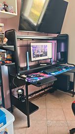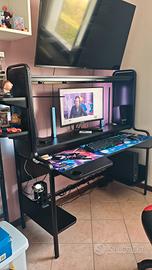 Vendo bellissima scrivania da gaming/ufficio modello FREDDE di IKEA, colore nero. È una postazione completa, super funzionale e molto robusta, ideale per chi usa più monitor o ha bisogno di spazio per console e accessori. Caratteristiche principali: Design ergonomico: Il piano sagomato permette di sedersi più vicini e sostiene i polsi. Spazio extra: Include due ripiani laterali (posizionabili all'interno o all'esterno) per casse o decorazioni e due ripiani inferiori per il PC o stampante. Organizzazione: Mensole superiori per monitor o libri e passacavi integrati per tenere tutto in ordine. Dimensioni: Larghezza 140 cm (estendibile a 185 cm con i ripiani laterali esterni), Profondità 74 cm, Altezza 146 cm. Stato dell'oggetto: La scrivania è in ottime condizioni, trattata con cura, senza graffi evidenti o danni strutturali.