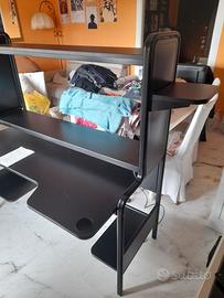 Scrivania ragazzo/ragazza gaming/studio pari al nuovo completa in tutte le sue parti. Modello Fredde Ikea, larghezza 140cm, profondità 74cm. Due ripiani a ponte sopra il piano di lavoro ( di cui uno è possibile regolare l altezza, due ripiani laterali e due ripiani sotto il piano x pc desktop e altro. Roma zona Monte Mario Policlinico Gemelli no spedizione