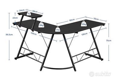 Vendo questa scrivania adatta sia al gaming che per arredamento ufficio. Tutte le misure sono presenti nell’ultima foto. Nessun difetto, completa di manuale e componenti