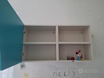 Scrivania pulita con cassettiera e finale angolare. Dimensioni: 155x58 Compreso anche mensola semi chiusa. Dimensioni: 120x64