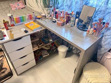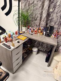 Scrivania Conforama Può essere utilizzata girata (come in foto)oppure lunga perché si gira a metà . Colore bianco &grigio Cell:3342002654