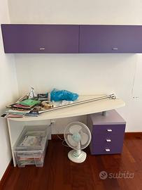 Scrivania con cassettiera + pensili doppia anta con apertura a pistone. Misure scrivania profondità sx cm70, larghezza cm150, profondità dx 45.