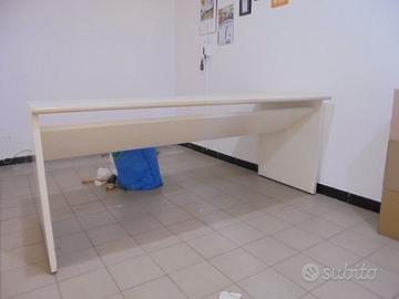 Scrivania grande di pregio bianca, misure lunga 180 cm , profonda 73,5 cm e alta 74 cm in ottime condizioni , presenza di qualche graffietto , ideale x studi , uffici, x tecnici riparatori , ecc , facile il trasporto xchè smontando il poggiapiedi con 2 viti , le basi laterali si ripiegano a 180 gradi ,lo vendo solo 80 euro , già smontata e pronta x il ritiro . valuto eventuali scambi e permute con altro da valutare , Darò priorità a chi vorrà lasciare il proprio numero x essere contattato a con chiamata a voce a orari che indicate che potete rispondere , non appena vedrò la vostra risposta.