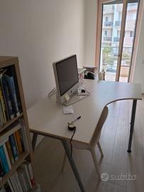 Scrivania da studio/cameretta. Ottimo stato, come nuova (a parte uno o due graffietti irrilevanti). Misure: altezza 80 cm ma regolabili; profondità lato corto 80 cm; profondità lato lungo 120 cm; larghezza 160 cm. Tavola in legno. Piedi in alluminio.