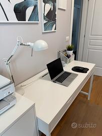 Vendo ben tenuta scrivania Ikea modello Alex bianca, misure lunghezza 132 cm , profondità 58 cm, altezza 76 cm. Dotata di due ampi cassetti e di sistema integrato per organizzare i cavi (nascosti ma a portata di mano). No spedizione, ritiro a mano.