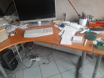 Scrivania Ikea con poltroncina e supporto per PC. Dimensioni cm 160 x cm 120. Altezza regolabile. Con poltroncina regolabile colore blu. Euro 55. Tel. 350.0695764 Luca
