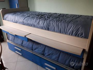 SCRIVANIA BIANCA CON DOPPIO CASSETTO E CASSETTIERA CON DOPPIO CASSETTO. LETTO MONDO CONVENIENZA COMPRESO DI MATERASSI ESTRAIBILI. DOTATO DI 2 SCRITTOIO INTEGRATI E 6 CASSETTI. TRASPORTO A CARICO DELL'ACQUIRENTE