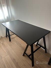 Scrivania ikea in ottime condizioni composta da piano linnmon 150x75 fuori produzione e due cavalletto Oddvald fuori produzione. Presenta due piccoli graffietti risolvibili col pennarello apposito. Color marrone/nero.