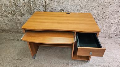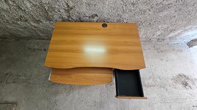 Scrivania in legno con un design funzionale, perfetta per il tuo spazio di lavoro. - Ampio piano d'appoggio 106x60cm - Vano estraibile per tastiera - Cassetto per riporre oggetti - Ripiano inferiore aggiuntivo
