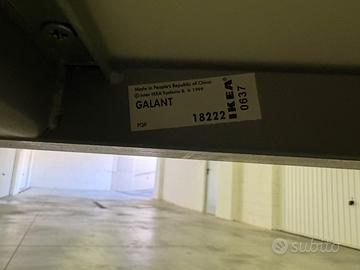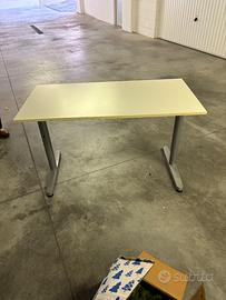 Vendo scrivania IKEA GALANT con piano color bianco panna e gambe in metallo grigio regolabili in altezza.