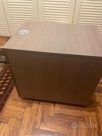 Vendo scrivania professionale con gambe regolabili in altezza, ripiano 120 x 80 cm, colore grigio effetto legno.